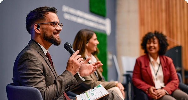Pidä kuulijat aktiivisina ja mukana. Osallistujat voivat esittää kysymyksiä omalla äidinkielellään, ja ne käännetään automaattisesti puhujalle reaaliajassa. Ei tarvetta mikrofoneille tai moderointivaikeuksille.